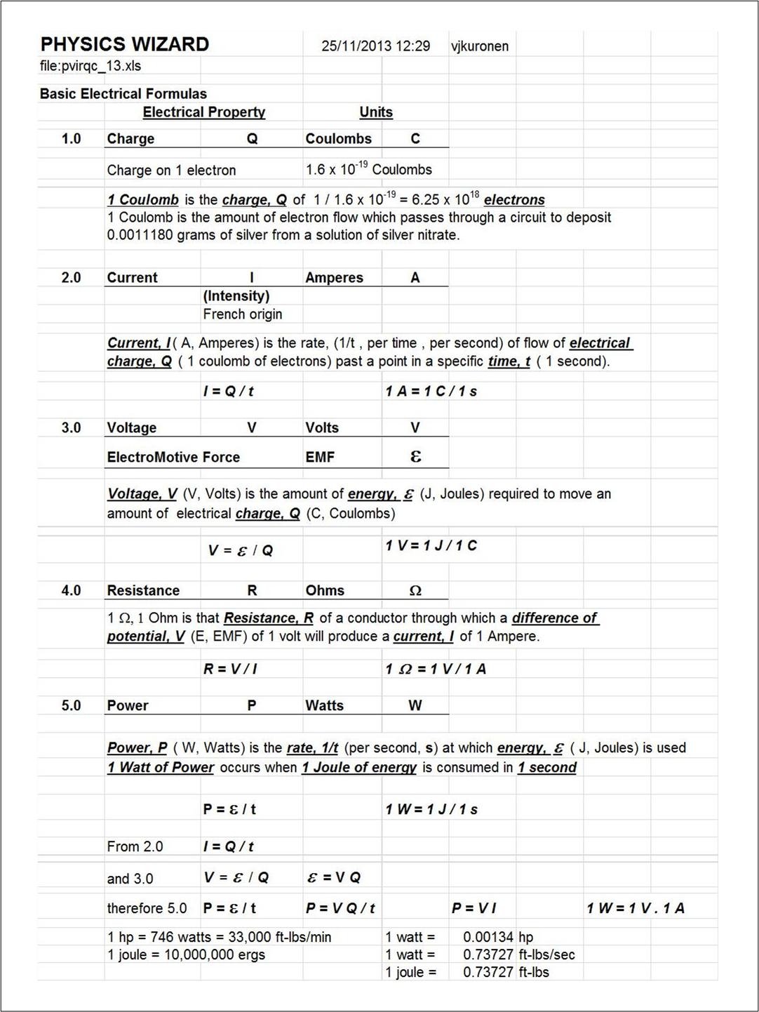 Basic Electrical Terms Power Volts Current Resistance Charge Capacitance