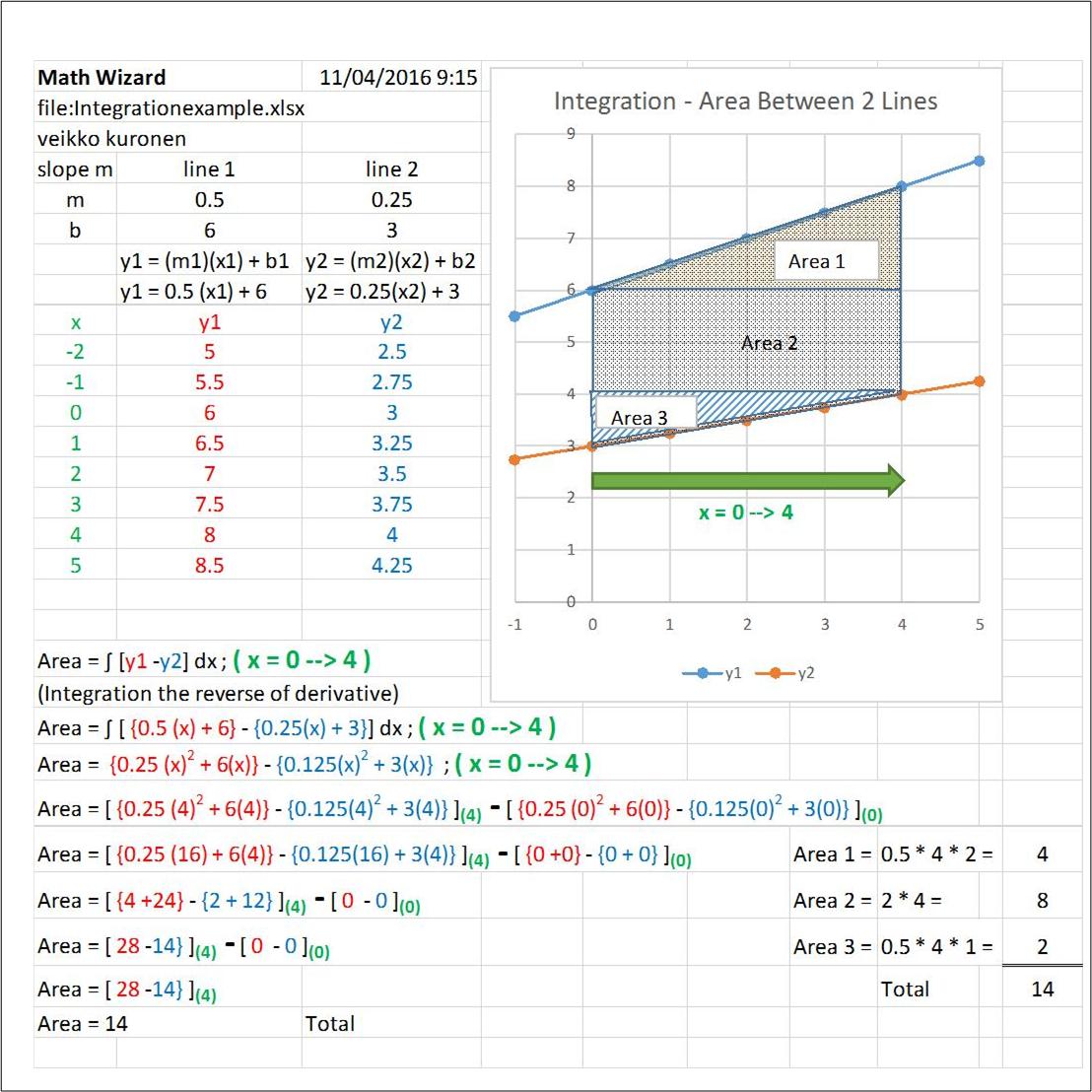 Intregration is JUST the AREA between 2 lines from Point A to Point B